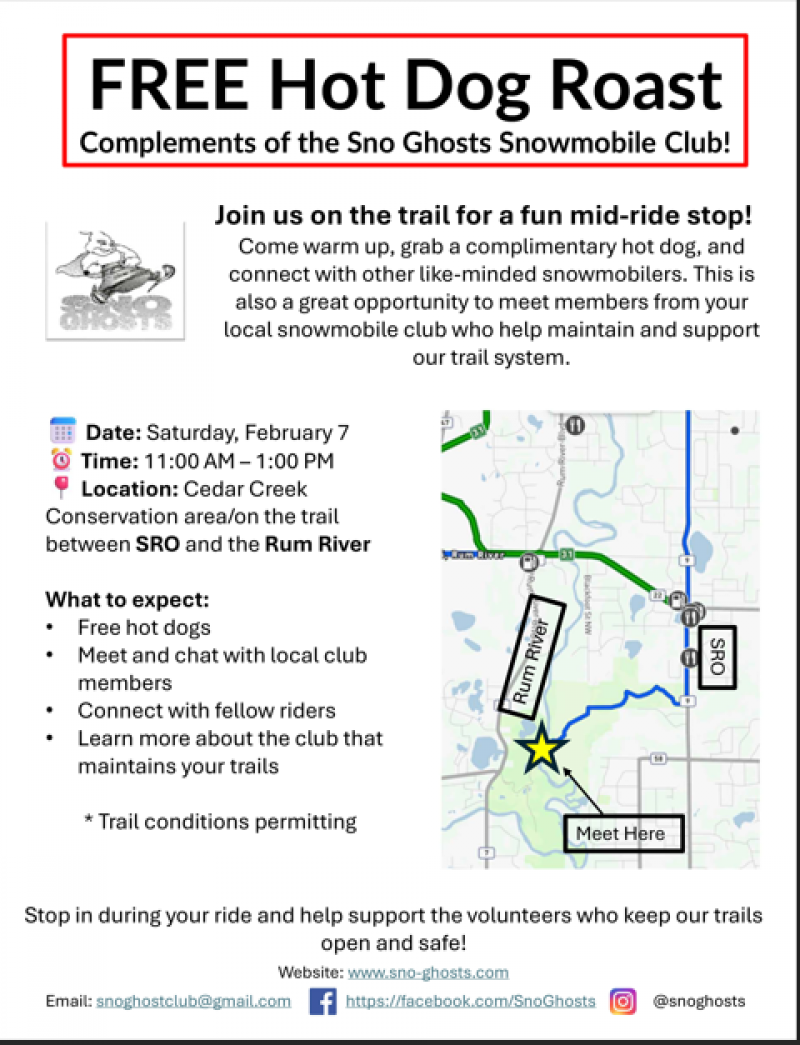 The Sno-Ghosts are an Anoka County Minnesota snowmobile club dedicated to the sport of snowmobiling. Organized in 1972, we volunteer to map, groom, design, mark and maintain the trails. We teach youth safety classes annually. We are also members of the Rum River Trail Association, organizing the Outlaw Grass Drags annual event held in Princeton, MN as well as maintaining over 500 miles of snowmobile trails. We do our part in making Minnesota a better place for you and your family to enjoy snowmobiling.
